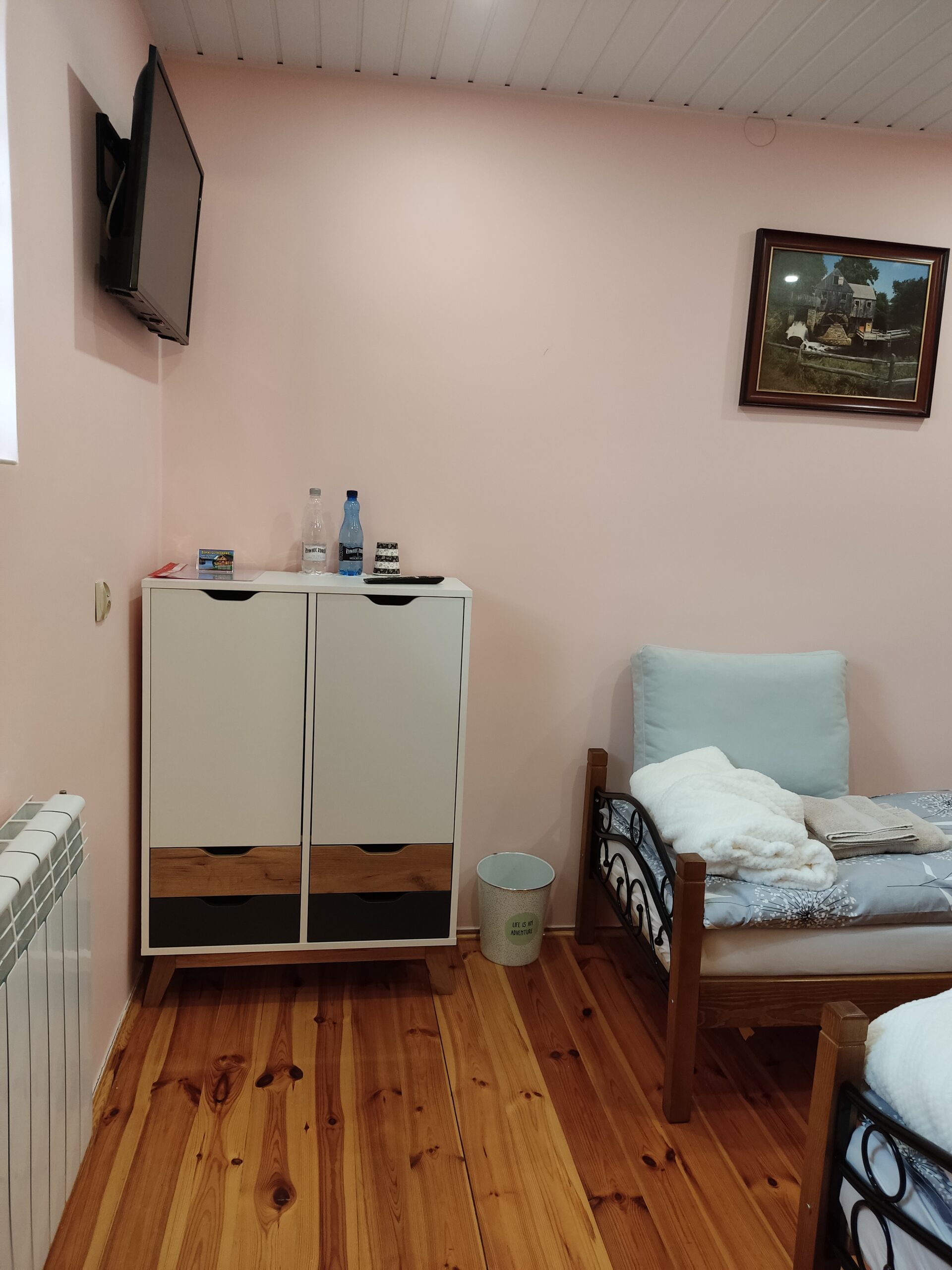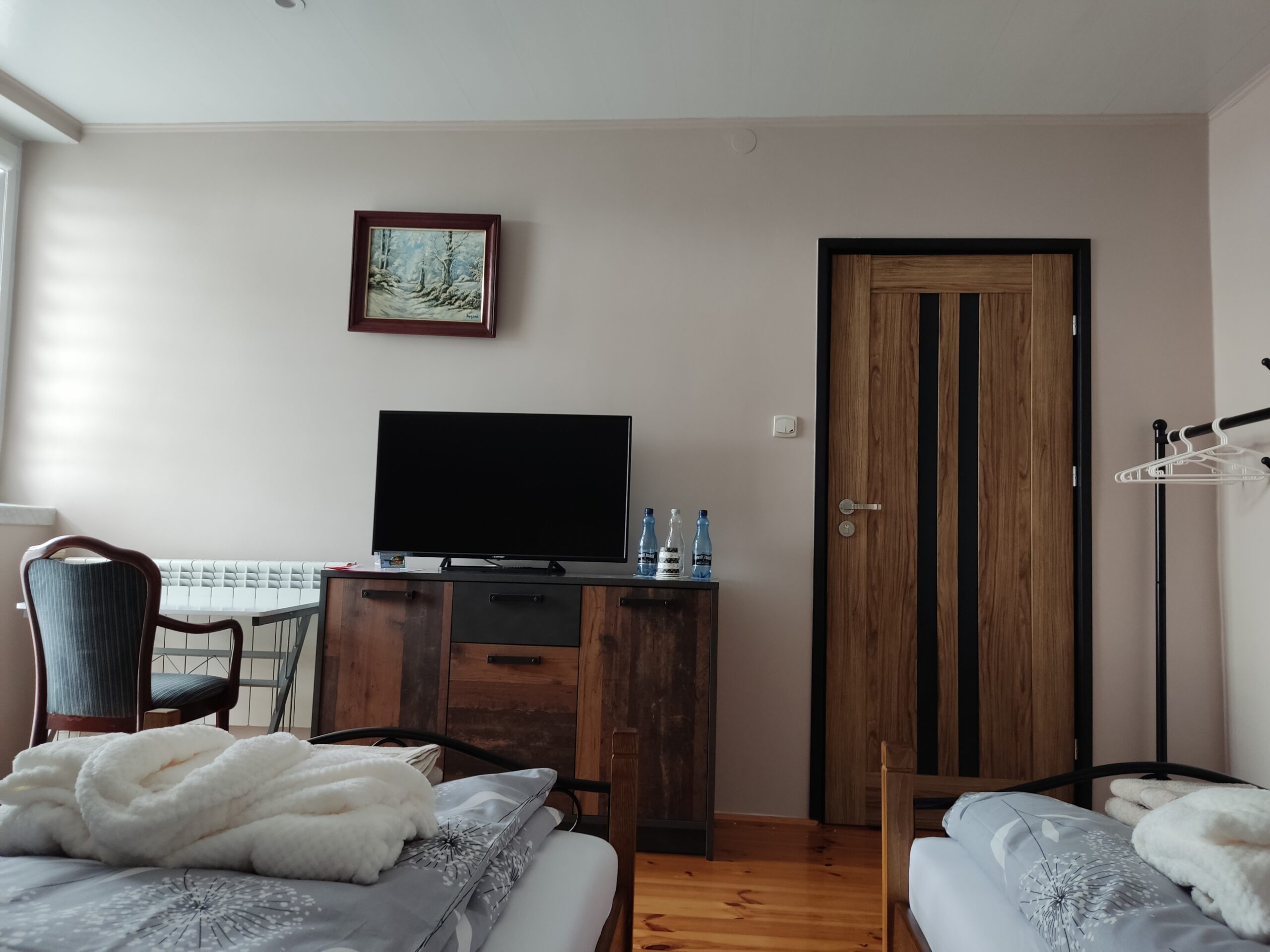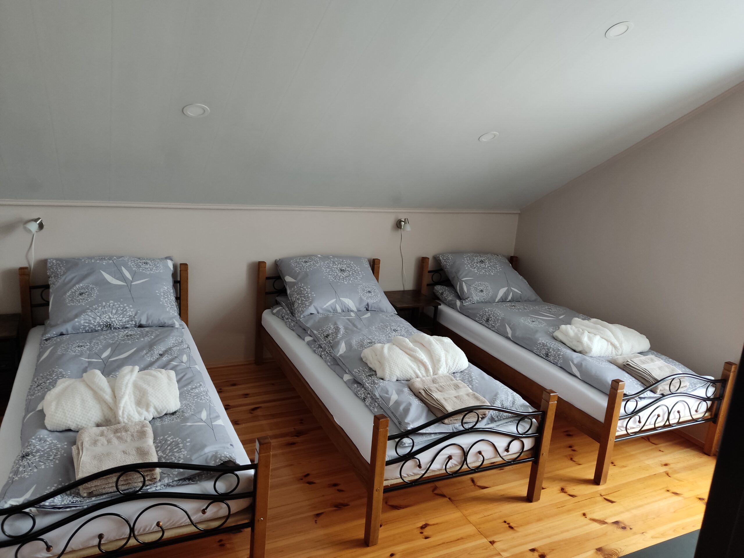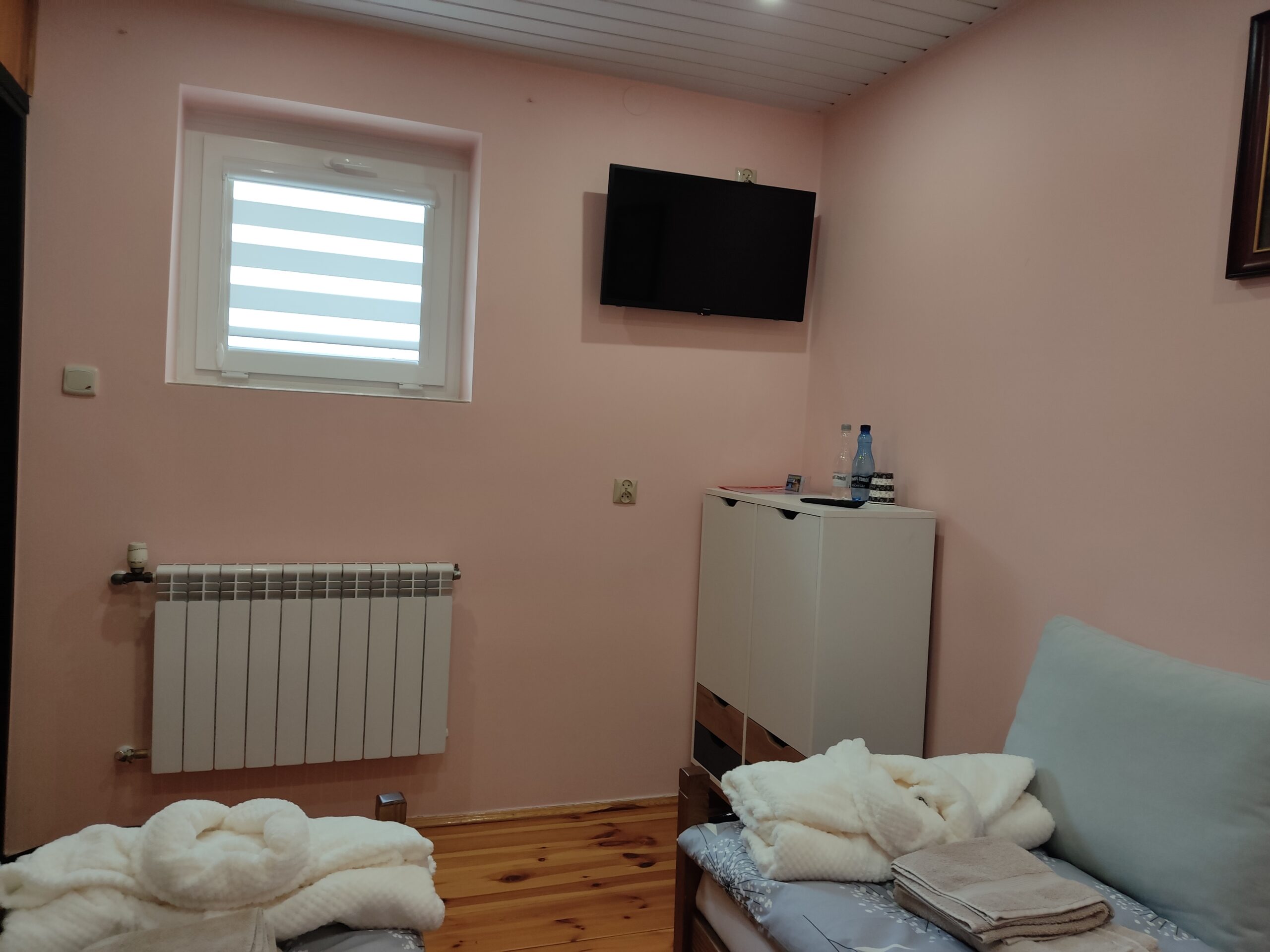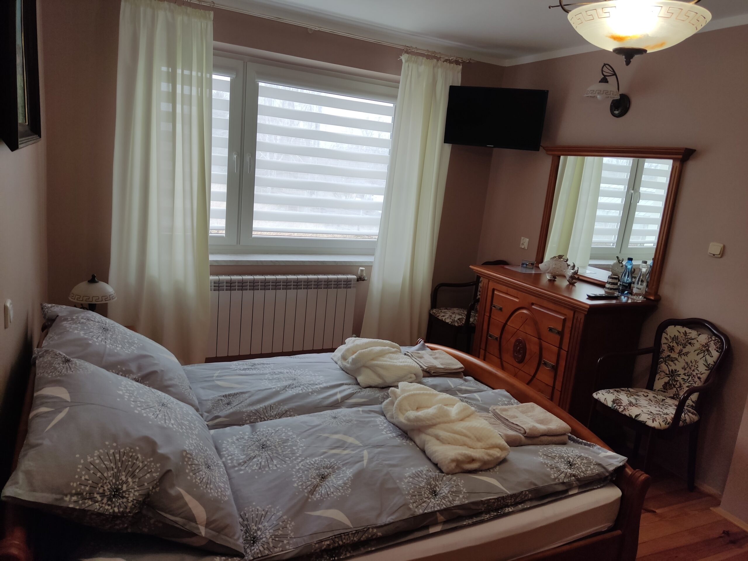 W każdym pokoju zestaw ręczników, pościel